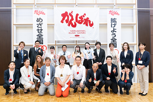 新しいチャレンジ、めざすその無垢な心を真っ白な地色に、そして、挑む勇気と燃える情熱が真っ赤な文字となりました。